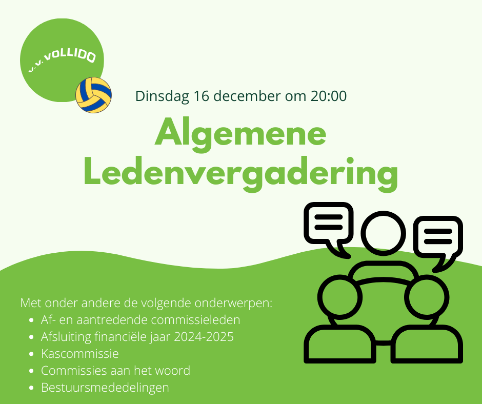 Hierbij nodigen wij jullie uit voor de Algemene Leden Vergadering van Vollido op dinsdag 16 december 2025 om 20.00 uur in het Clubhuis aan de Reeweg 83, Hendrik-Ido-Ambacht.